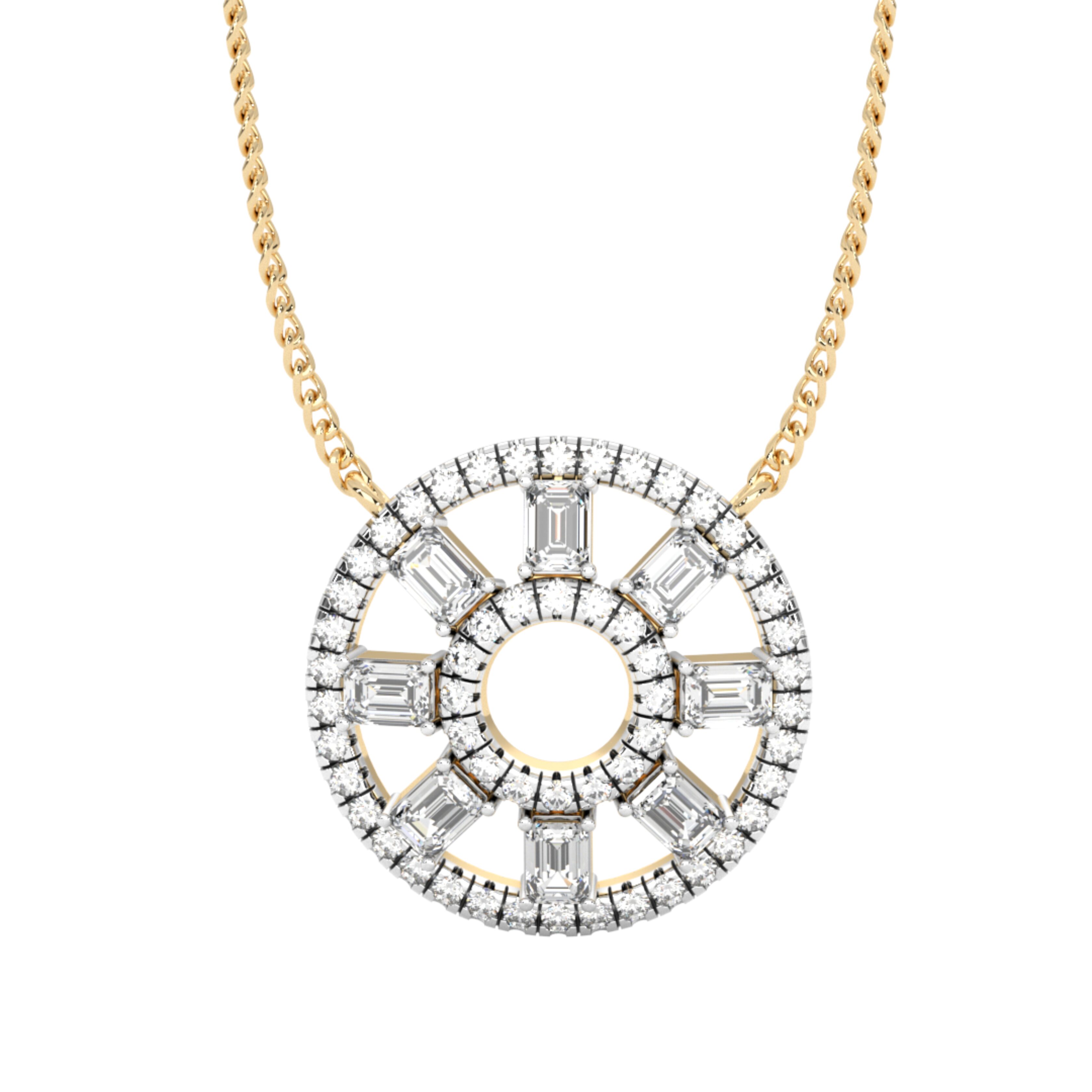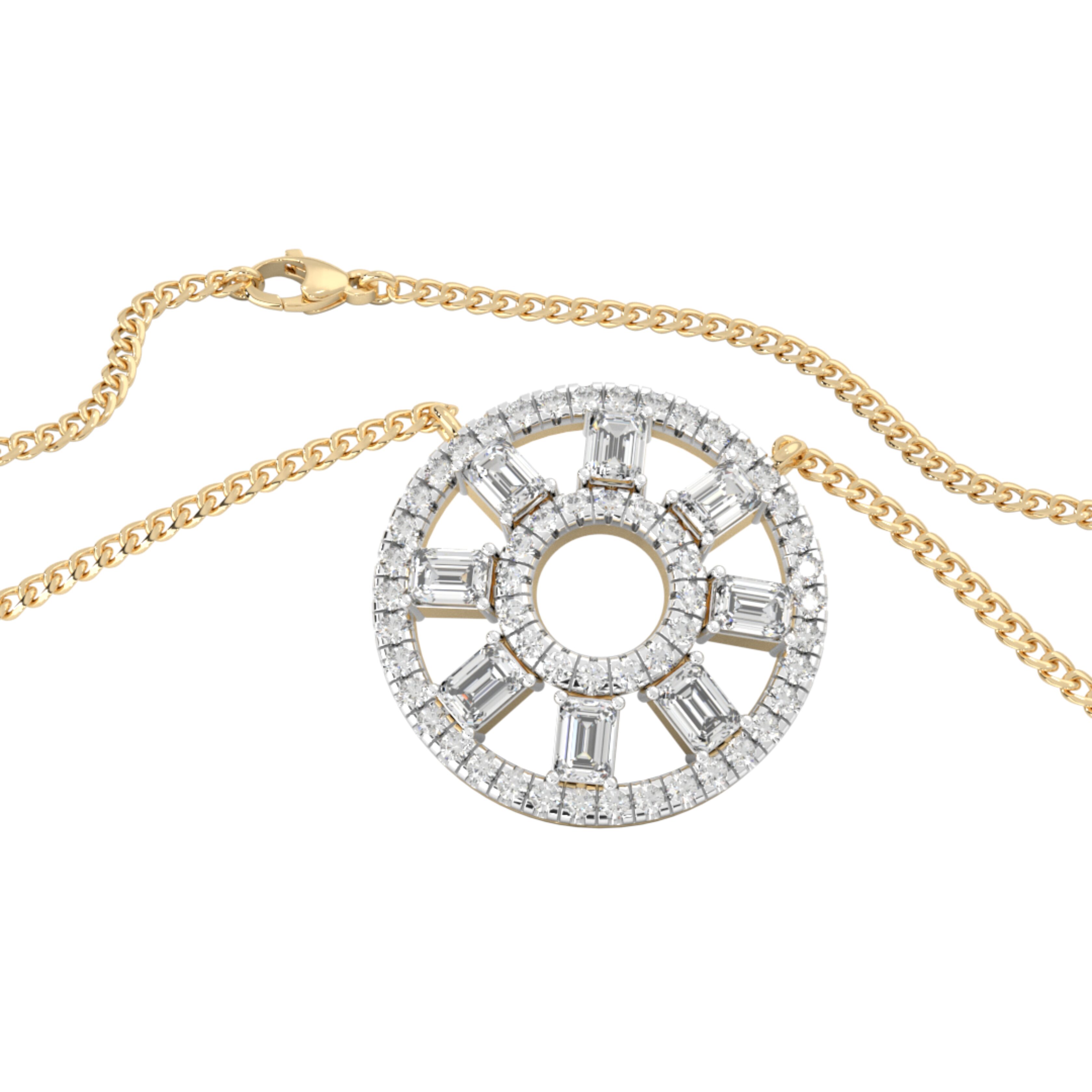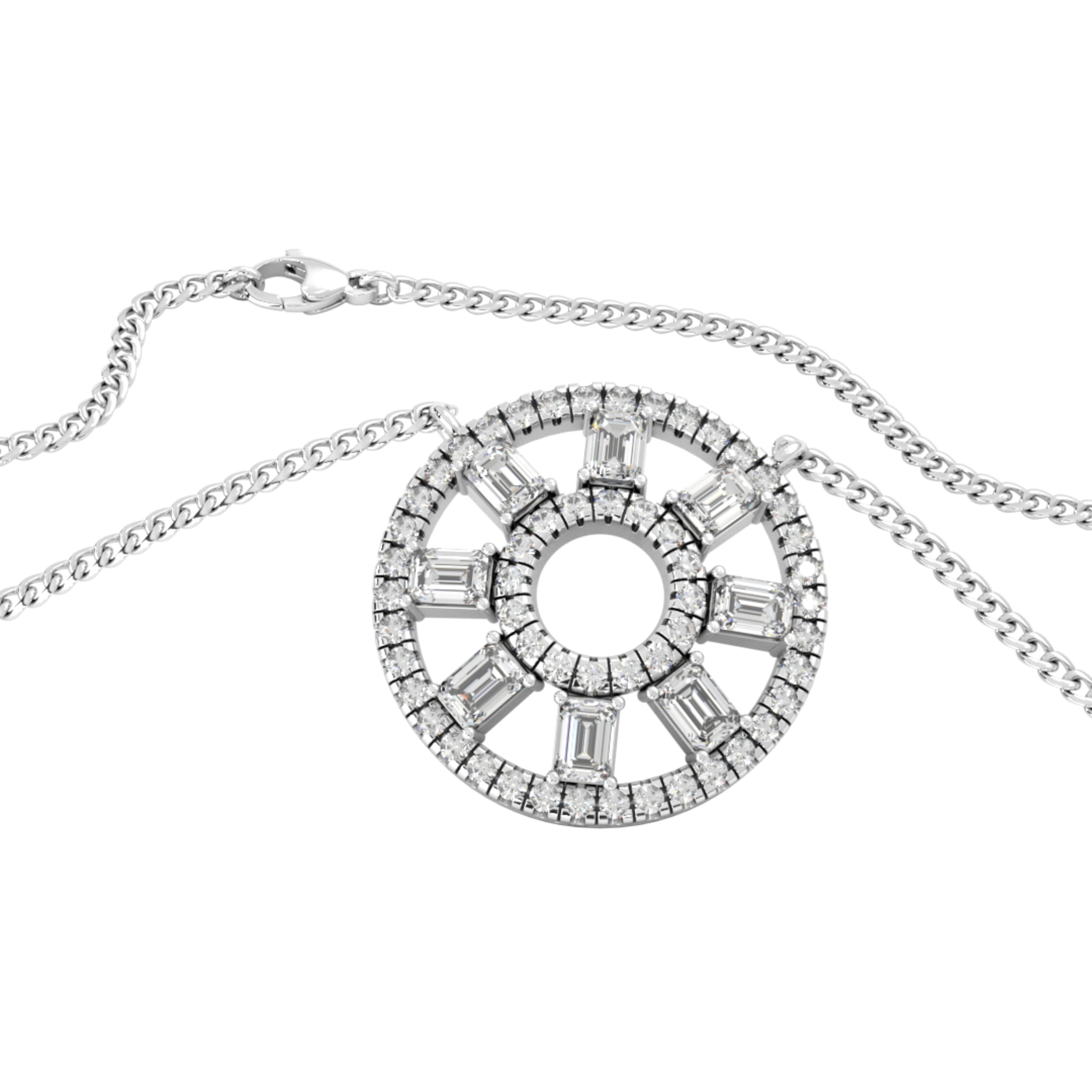 Here comes the mesmerizing Geo Variato Pendant, a captivating masterpiece from our exquisite Variato collection. You’ll be captivated by the flawless fusion of two breathtaking diamond shapes: the timeless Round and the majestic Emerald.