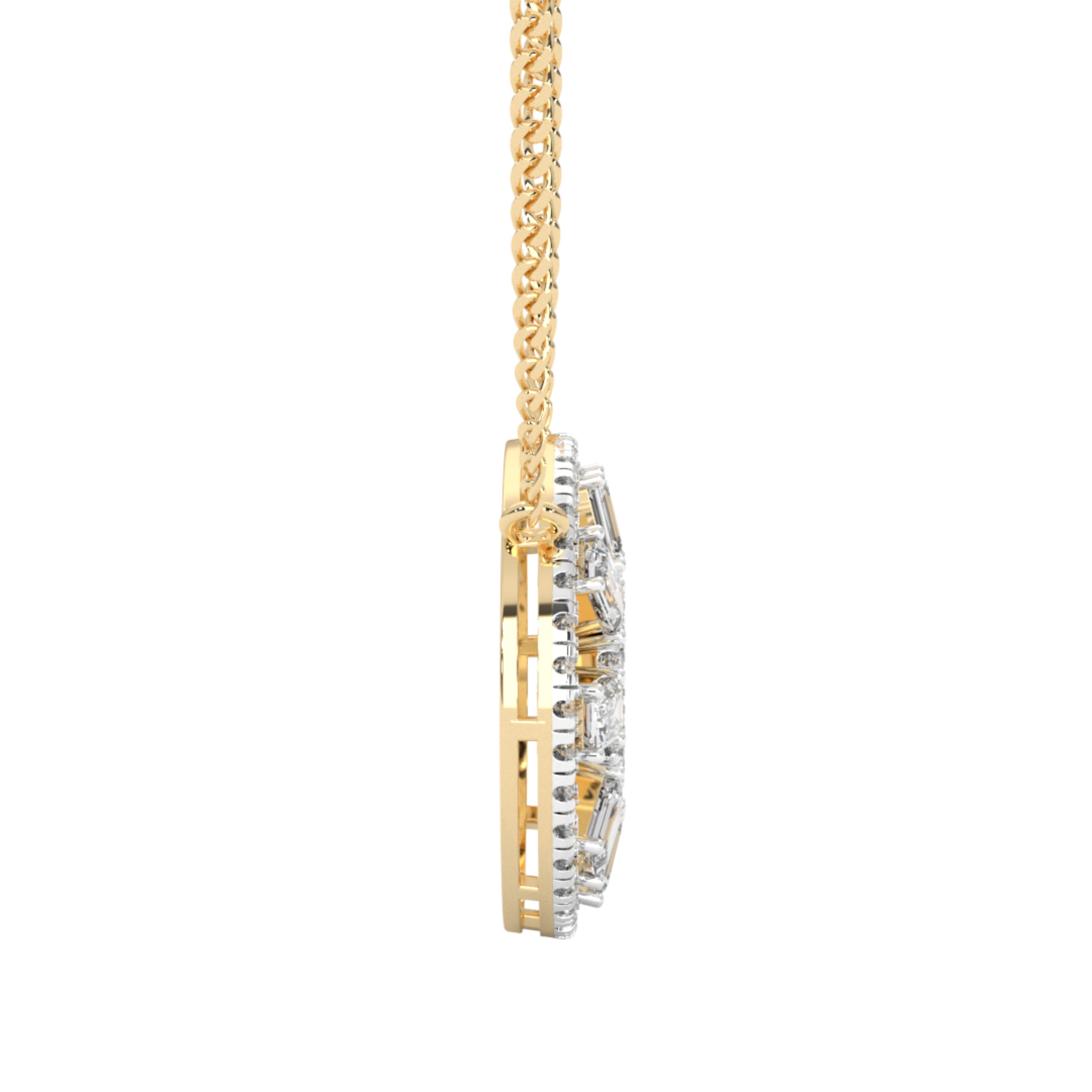 Immerse yourself in sheer luxury with the Geo Variato Pendant, available in a range of weights that cater to your desires. Choose from the enchanting options of 9KT, 10KT, 14KT, and 18KT, each one a testament to the utmost craftsmanship and attention to detail. Prepare to be dazzled by the pendant’s total diamond weight of 2.262 carats, emanating a scintillating radiance that will leave you breathless.